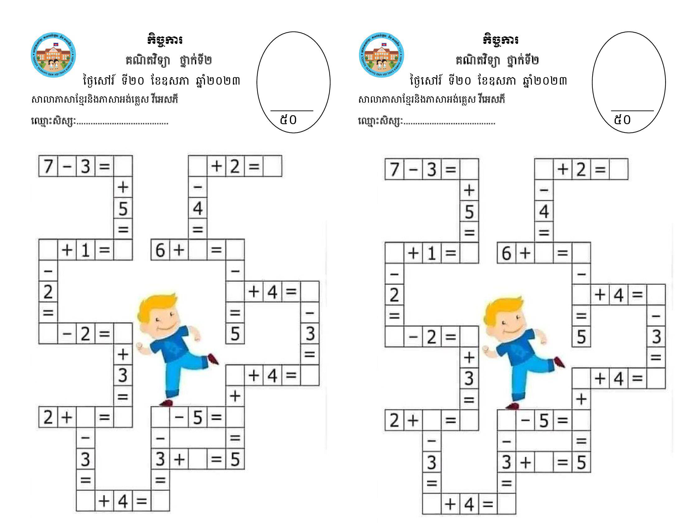 តេស្តគណិតវិទ្យាដើមឆ្នាំ ថ្នាក់ទី២