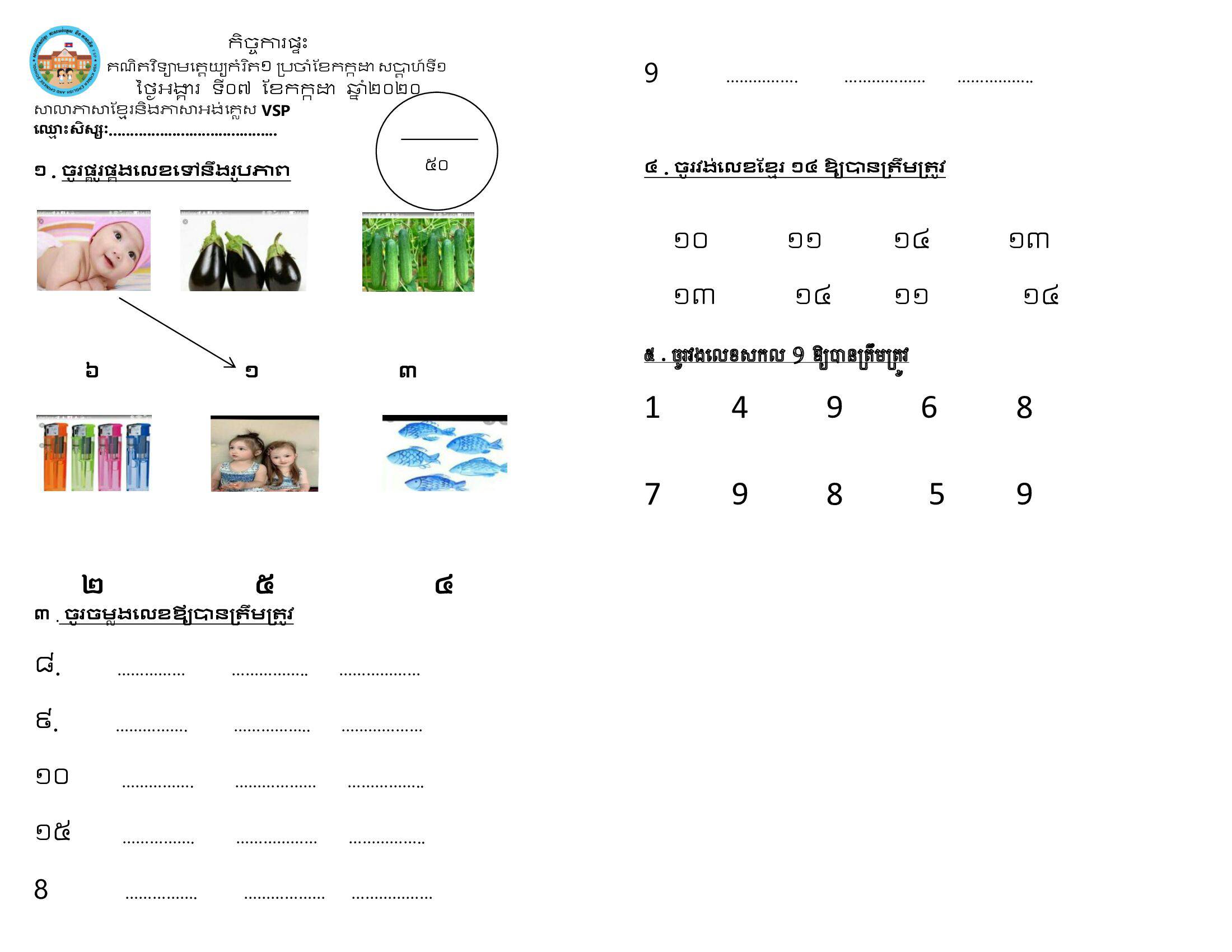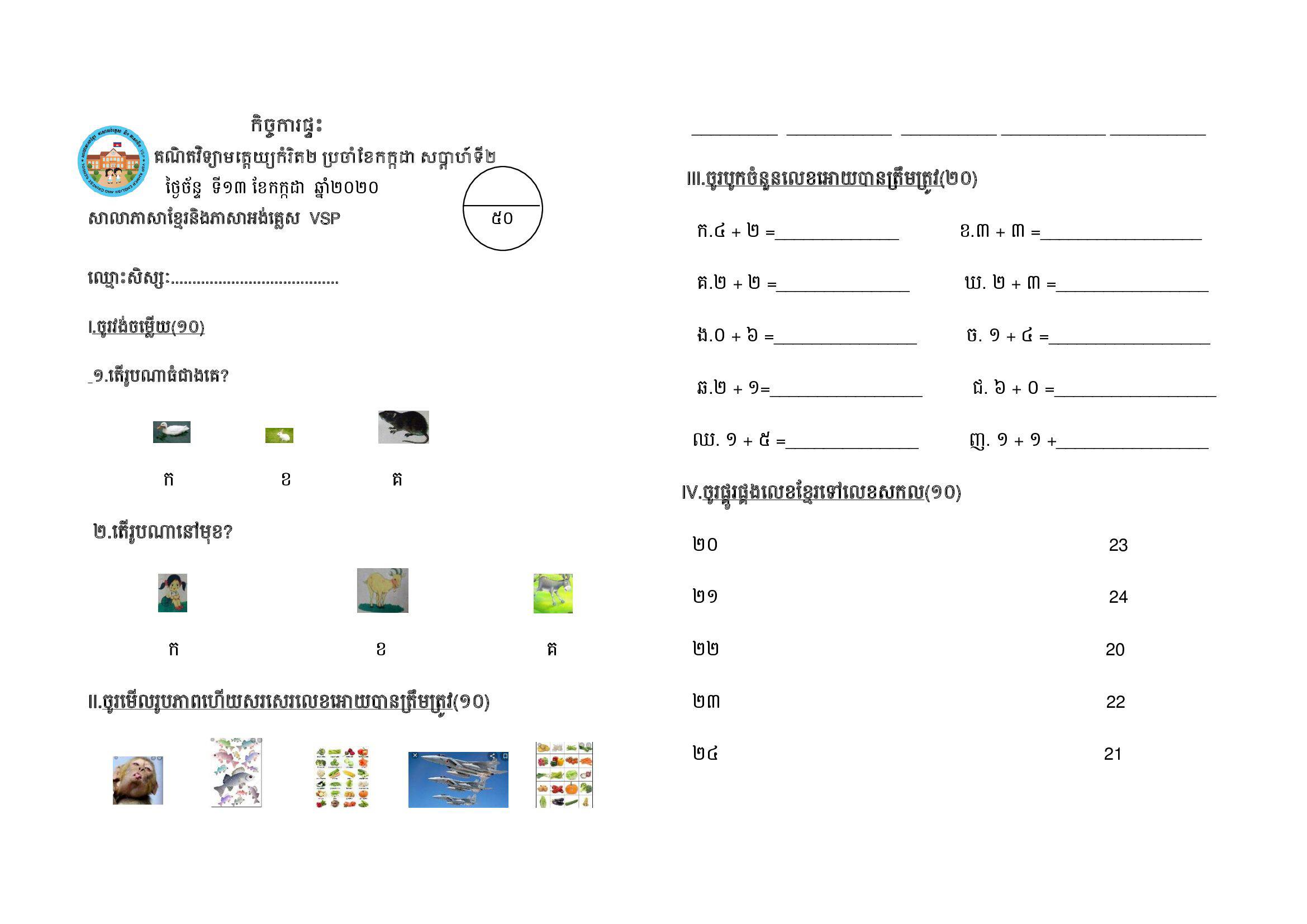 ២០ គណិតវិទ្យា ថ្នាក់ទី១